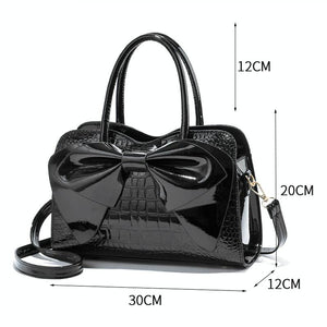 Leather Ladies Handbag - Bright Bow Design - Yellow